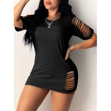 Lovely Leisure O Neck Hollow-out Black Mini Dress