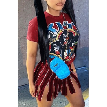 Lovely Casual O Neck Print Red Mini Dress