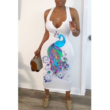 Lovely Leisure Print Whtie Mid Calf Dress