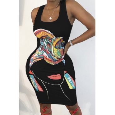 Lovely Leisure U Neck Print Black Knee Length Dress