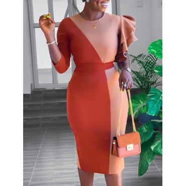 Lovely Trendy Patchwork Flounce Design Jacinth Knee Length Dress