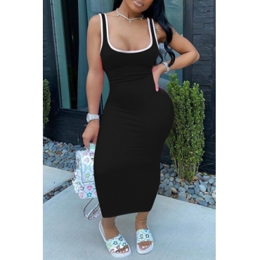 Lovely Sportswear U Neck Patchwork Black Ankle Length Dress