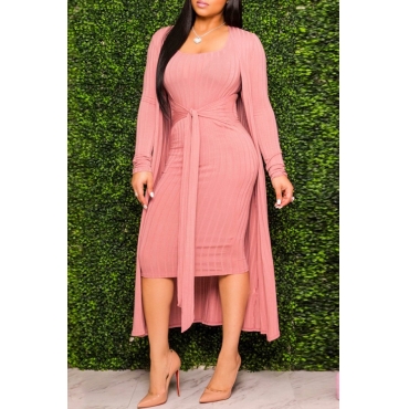 Lovely Casual Lace-up Pink Two-piece Skirt Set