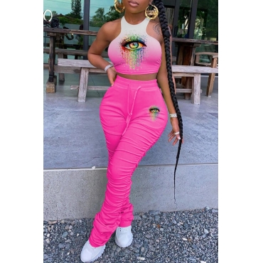 Lovely Street Eye Print Rose Red Two-piece Pants Set