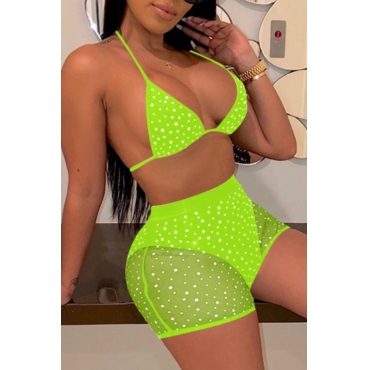 Lovely Hot Drilling Decorative Green Two-piece Swimsuit