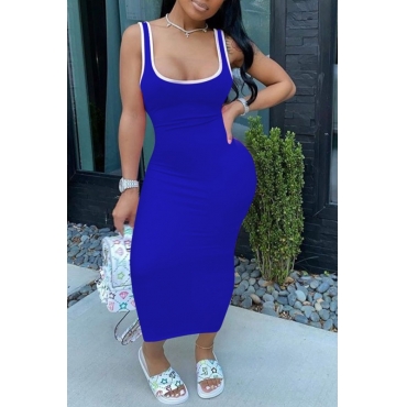 Lovely Sportswear U Neck Patchwork Blue Ankle Length Dress