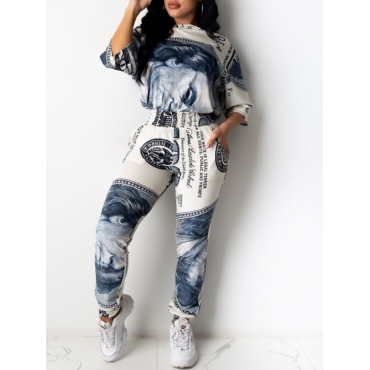 Lovely Trendy O Neck Print Grey Two-piece Pants Set
