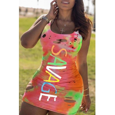 Lovely Stylish U Neck Tie-dye Multicolor Mini Dress