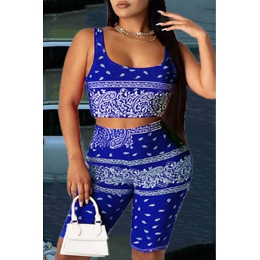 Lovely Trendy Print Blue Two-piece Shorts Set