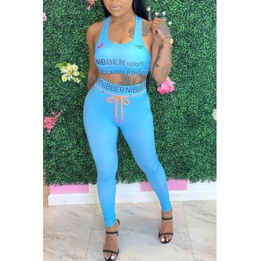 Lovely Sportswear Letter Blue Two-piece Pants Set