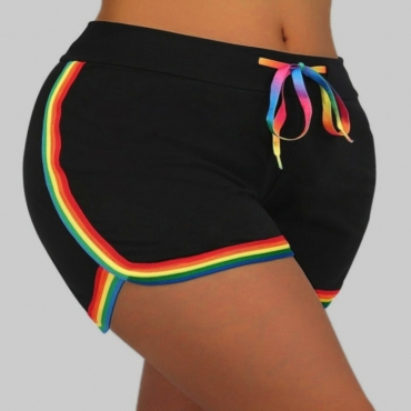 Lovely Sportswear Patchwork Black Plus Size Shorts