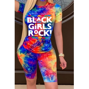 Lovely Street One Shoulder Tie Dye Multicolor Two Piece Shorts Set
