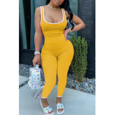 Lovely Sportswear Patchwork Yellow One-piece Jumpsuit