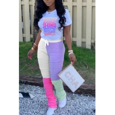 Lovely Street Letter Print Croci Two-piece Pants Set