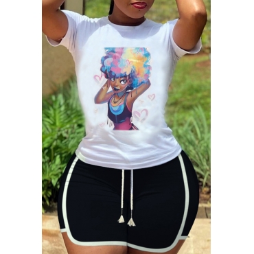Lovely Street Lip Print Pink Plus Size Two-piece Shorts Set