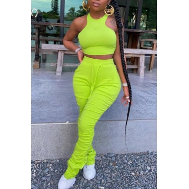 Lovely Stylish Fold Design Green Two-piece Pants Set