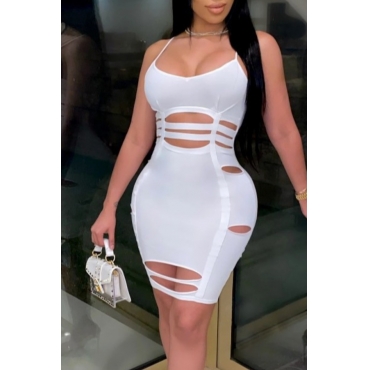Lovely Sexy Hollow-out White Knee Length Dress