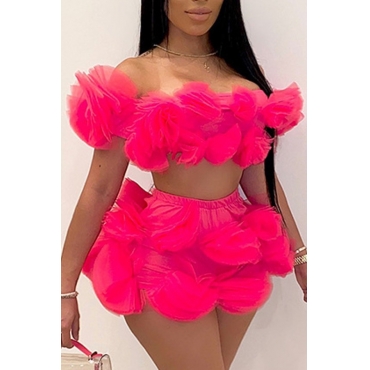 Lovely Stylish Dew Shoulder Patchwork Red Two-piece Shorts Set
