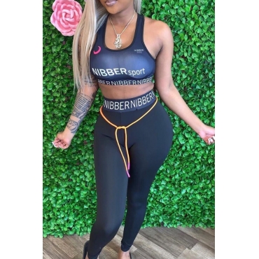 Lovely Sportswear Letter Deep Blue Two-piece Pants Set
