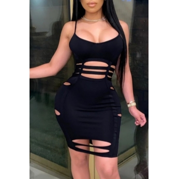 Lovely Sexy Hollow-out Black Knee Length Dress