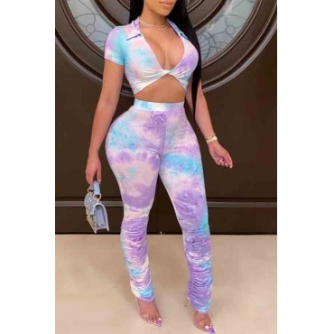 Lovely Trendy Tie-dye Fold Design Purple Two-piece Pants Set