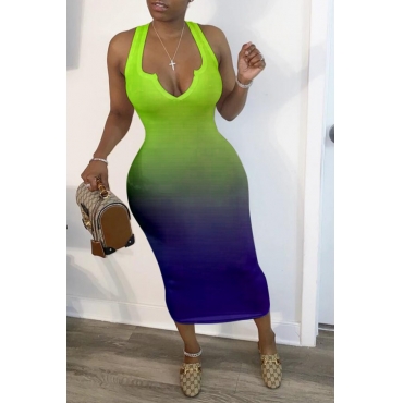 Lovely Sexy Gradual Change Green Mid Calf Dress
