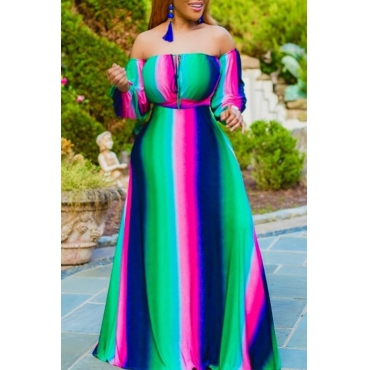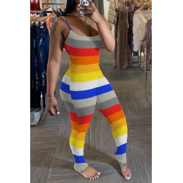 Lovely Stylish Rainbow Striped Yellow One-piece Jumpsuit(Batch Print)