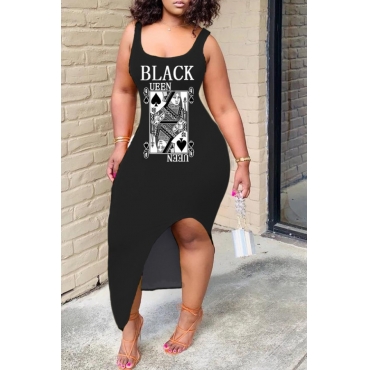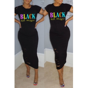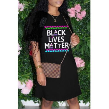 Lovely Leisure O Neck Print Black Knee Length Dress