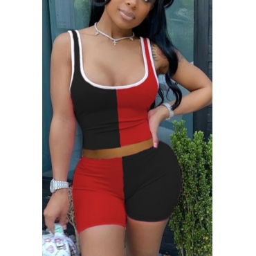Lovely Sportswear Patchwork Red Two-piece Shorts Set