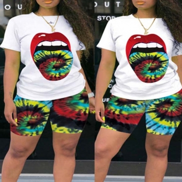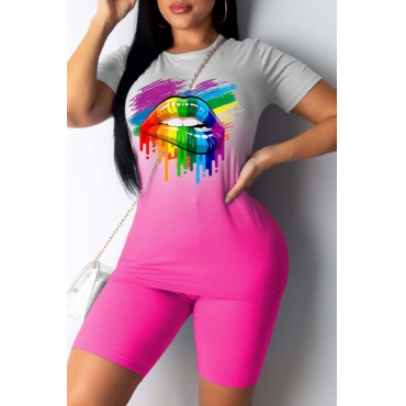 Lovely Casual Lip Print Rose Red Two-piece Shorts Set