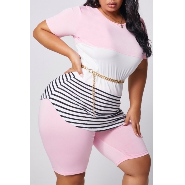 Lovely Casual Patchwork Pink Plus Size Two-piece Shorts Set