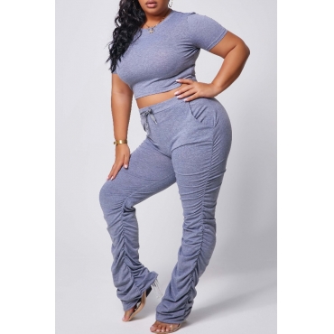 Lovely Casual Fold Design Dark Grey Plus Size Two-piece Pants Set