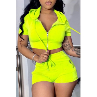 lovely Casual Zipper Design Yellow Two-piece Shorts Set