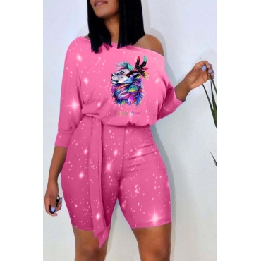 Lovely Leisure Print Pink Two-piece Shorts Set
