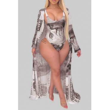 Lovely Print Brown Plus Size One-piece Swimsuit(With Cover-up)