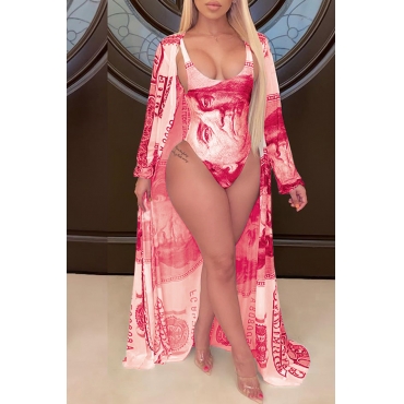 Lovely Print Red One-piece Swimsuit(With Cover-up)