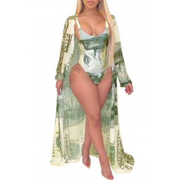 Lovely Print Yellow One-piece Swimsuit(With Cover-up)