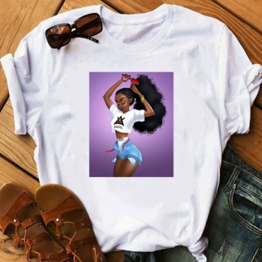 Lovely Casual O Neck Print Purple T-shirt