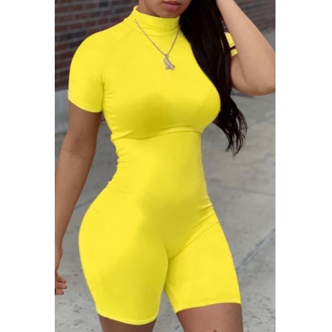 Lovely Leisure Basic Skinny Yellow One-piece Romper
