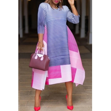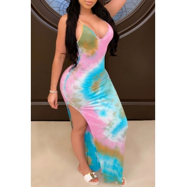 Lovely Casual Tie-dye Blue Ankle Length Dress