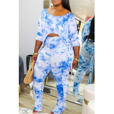 Lovely Casual Tie Dye Asymmetrical Blue Two Piece Pants Set