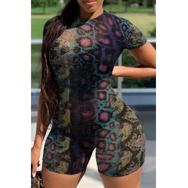 Lovely Casual Snakeskin Print Multicolor One-piece Romper