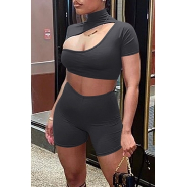 Lovely Sexy Hollow-out Black Two-piece Shorts Set