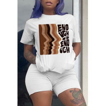 Lovely Casual Print White Two-piece Shorts Set