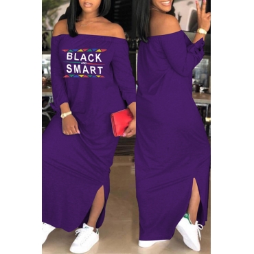 Lovely Euramerican Dew Shoulder Letter Print Purple Ankle Length Dress