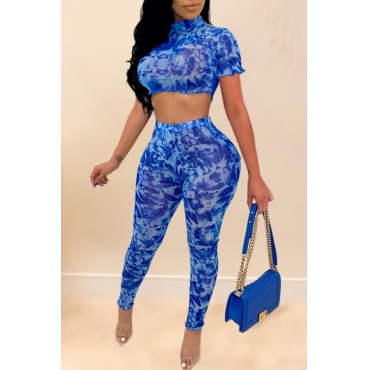Lovely Sexy Print Blue Two-piece Pants Set
