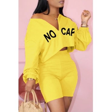 lovely Leisure Letter Yellow Two-piece Shorts Set