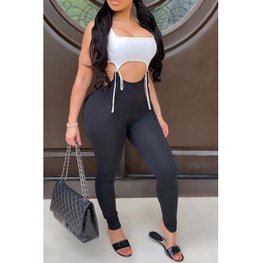 Lovely Sexy Hollow-out Black And White One-piece Jumpsuit