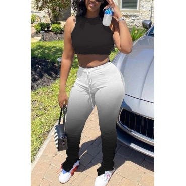 Lovely Casual Gradual Change Black Two-piece Pants Set