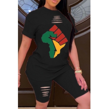 Lovely Casual Print Black Two-piece Shorts Set